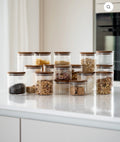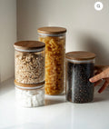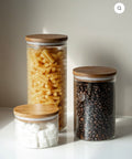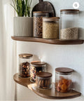 Nos bocaux de stockage avec couvercle en acacia sont le lieu de stockage idéal pour vos ingrédients préférés, qu'il s'agisse de stocks frais ou de collations faites maison. Grâce à la fermeture hermétique, vos aliments restent frais plus longtemps, tandis que le verre de borosilicate non polluant assure une conservation pure. Élégante, durable et pratique, pour une cuisine aussi belle qu'elle fonctionne.