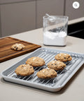 La plaque de cuisson antiadhésive avec grille de refroidissement assortie est votre multi-outil pour la cuisine. Qu'il s'agisse de biscuits, de pain ou de plats en tôle, rien ne colle ici, et grâce à la grille, la finition parfaite réussit.