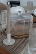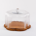 Cloche FLOWER en Verre Strié & Bois d’Acacia – Élégance Gourmande (Ø22,5 cm)
