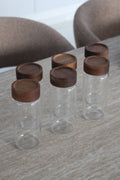 Pots à épices en verre borosilicate avec couvercle en bois d’acacia - LOT DE 6